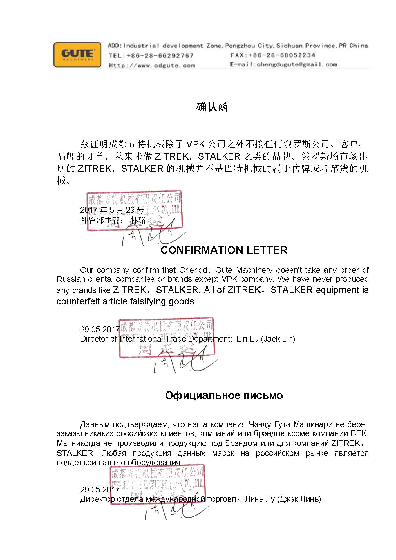 Сертификат дистрибьютора (ООО «ВПК робототехника») на русском