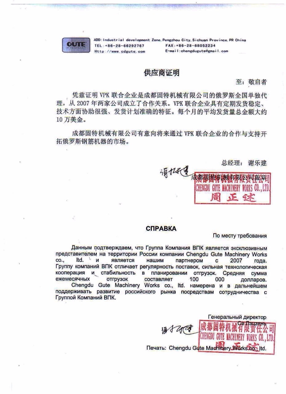Сертификат дистрибьютора (Группа компаний ВПК)